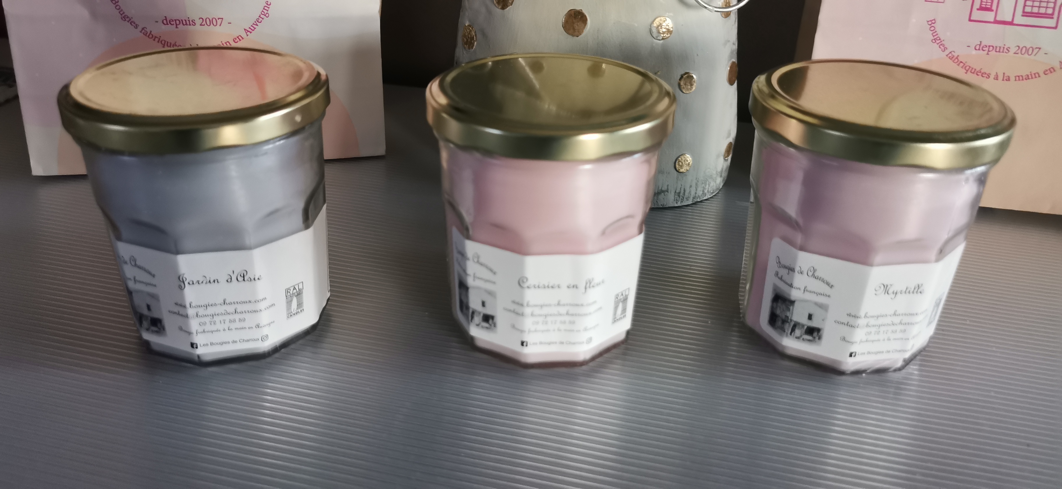 Beaucoup de choix de parfums pour les bougies ( des agrumes , des fleurs , des gourmandises, des fruits, chocolats……) de quoi trouver son bonheur Bougies de très bonnes qualités Et on a de bon conseil